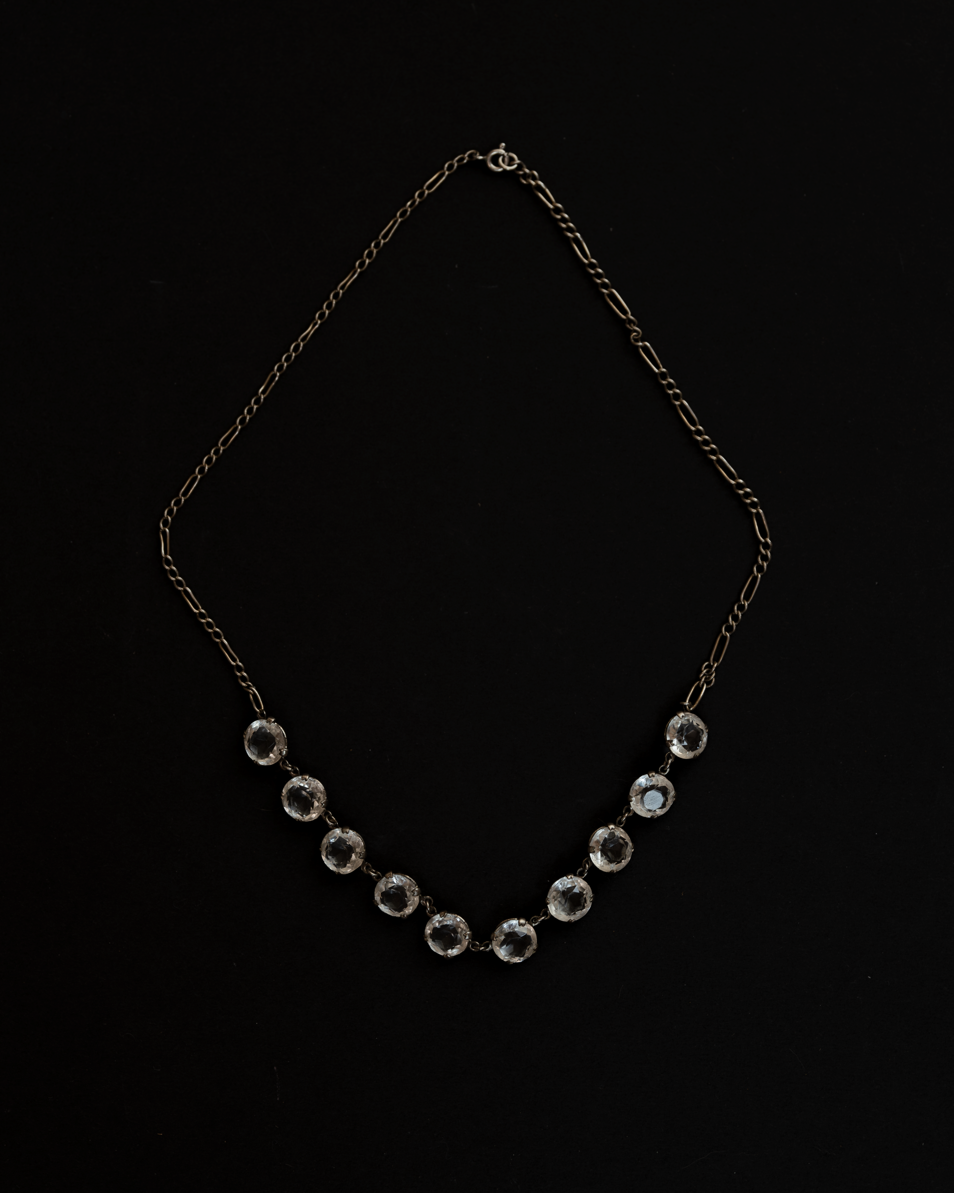 透明度のとても高いクリスタルとシルバーの煌めきが美しい、1950年代頃のリヴィエールネックレス。