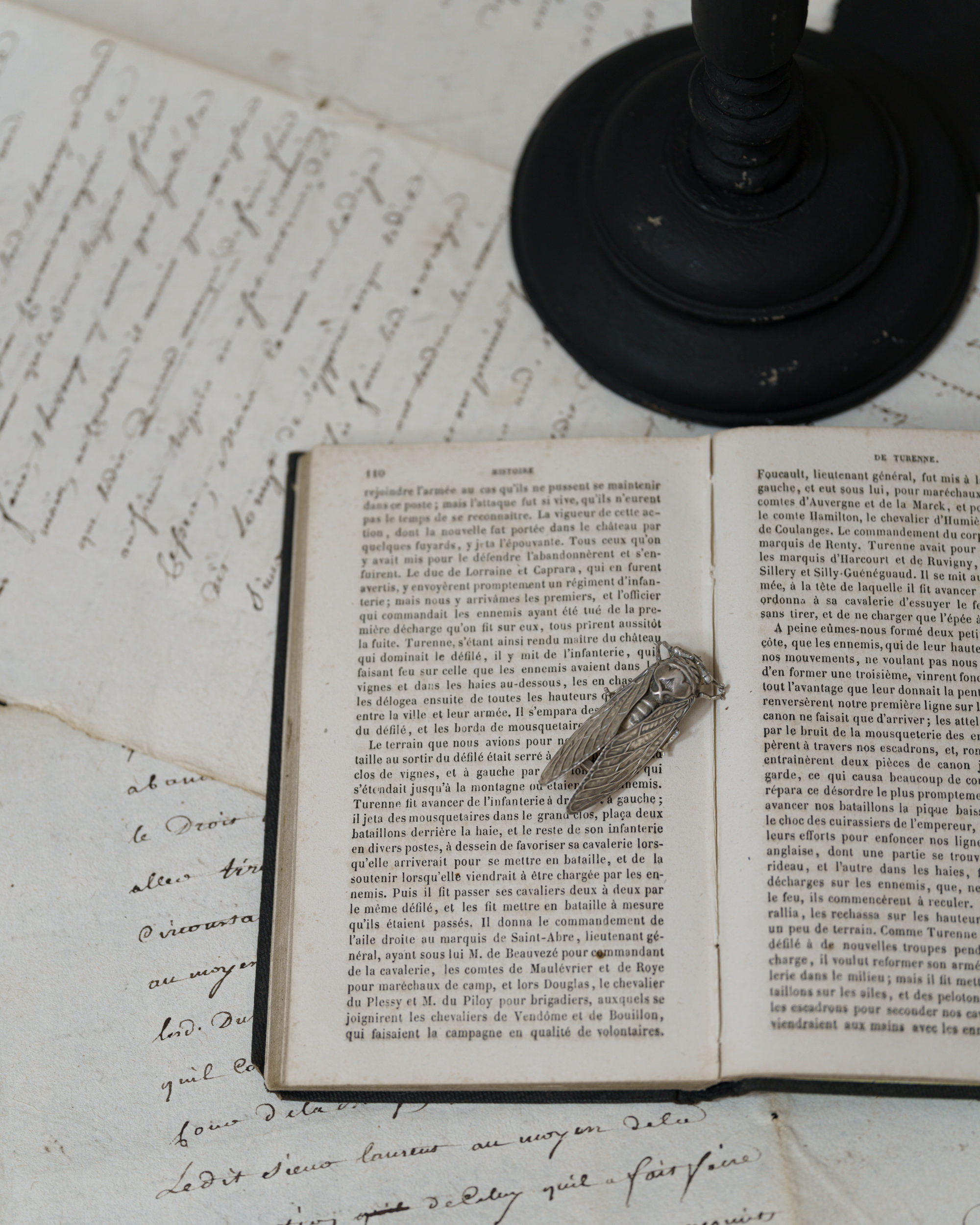 セミは、フランスでは「復活」や「不死」の象徴として愛されており、特に南仏プロヴァンス地方では幸運を運ぶモチーフとして広く親しまれています。そんな身に着けることで持ち主に力を与えてくれるモチーフがデザインされた、お守りのようなブローチです。